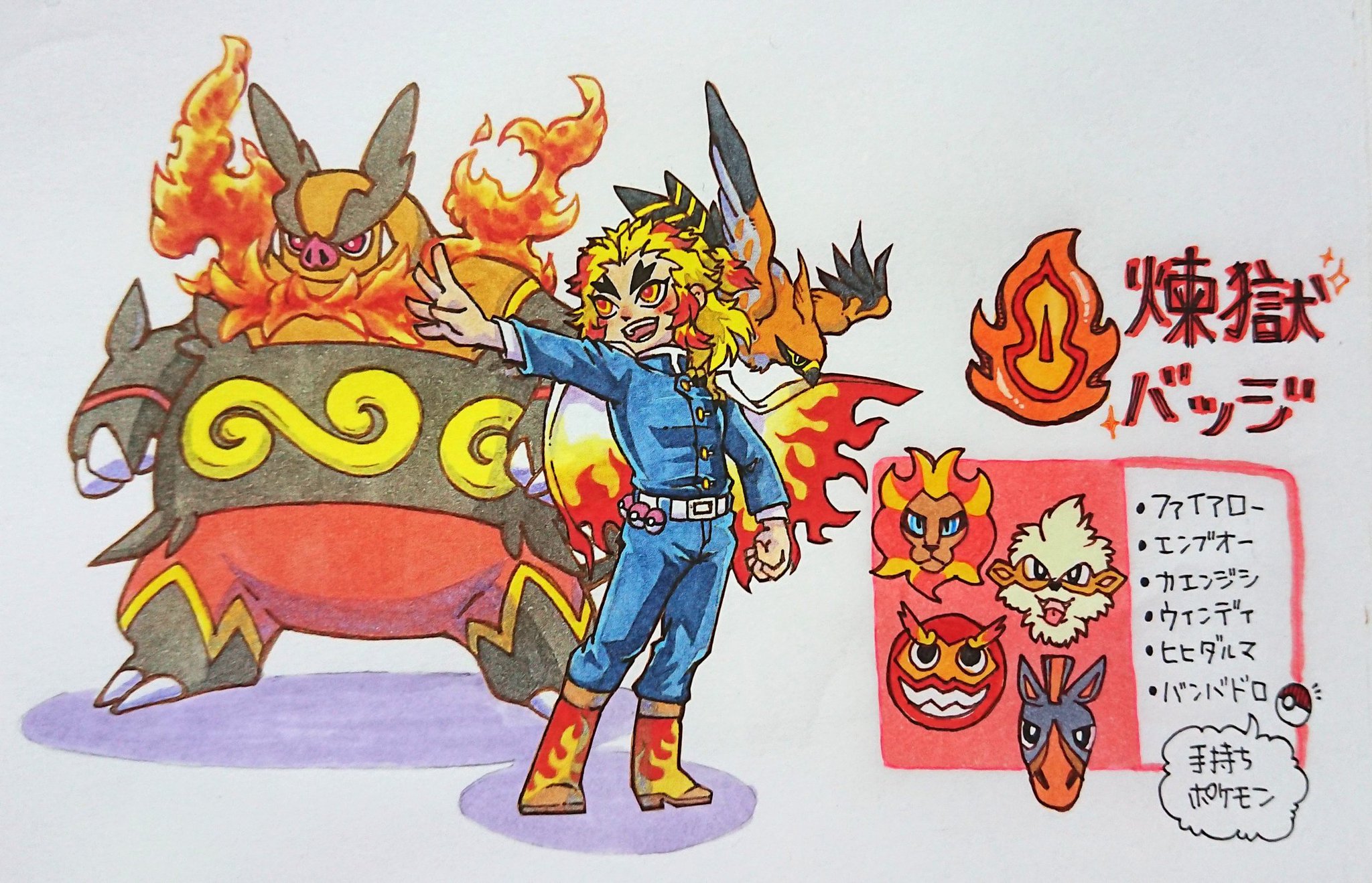 ミキヨキミ 低浮上 Sur Twitter 煉獄さんに似合うポケモンを描いてみました 鬼滅の刃イラスト ポケモンイラスト